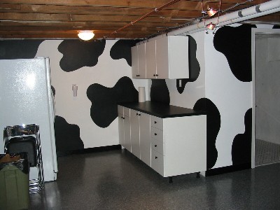 the idea to paint my basement in cow spots, but when we refinished it,