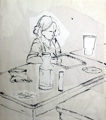 picture) I decided to have her be my cluttered mess. I was using ink,