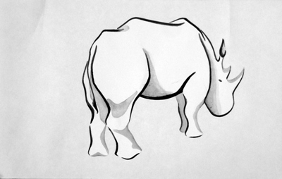 Remember my Rhino? This is his latest incarnation, a bold version in strikingly black sumi ink. Stay tuned for even more rhinos!